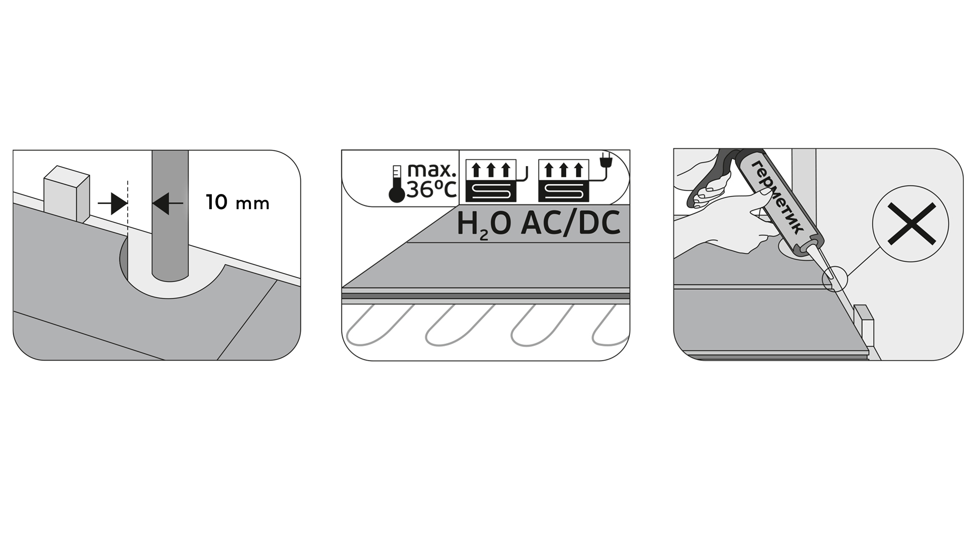 FARGO — уникальный пол: он совместим с любой удобной вам системой тёплого пола и при этом выдерживает нагрев до +36 градусов. Это высокий порог для напольного покрытия, но он установлен, и необходимо следить за ним. Превышение температуры нагрева запрещено и ведёт к порче напольного покрытия.