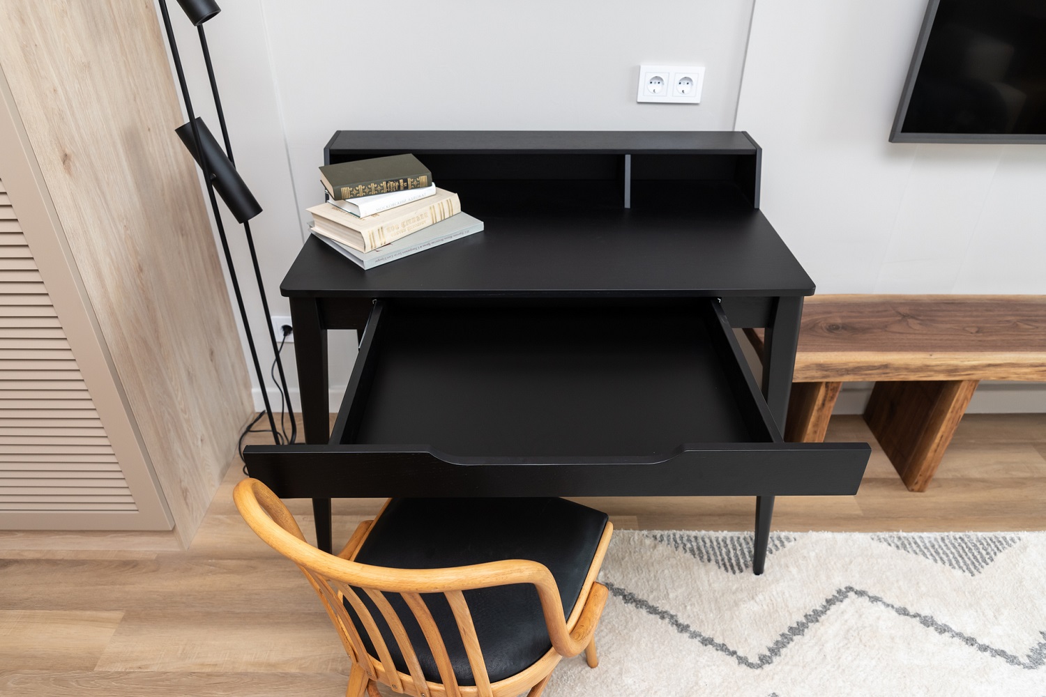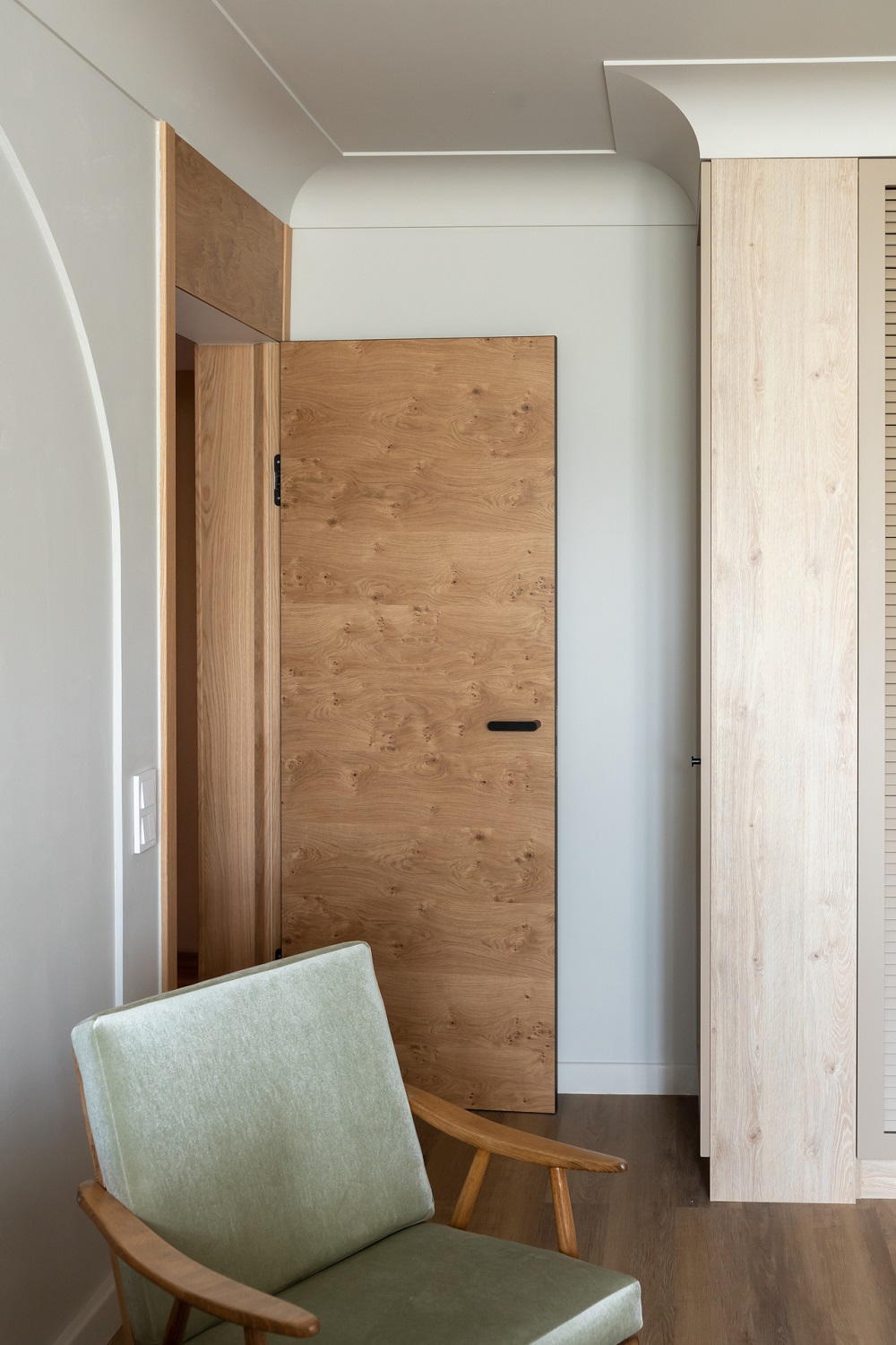 Кварцевый ламинат Fargo Comfort Дуб Мехико 70W921 легко вписывается в любой интерьер и обладает высокой износостойкостью, поэтому на полу уложили именно его.